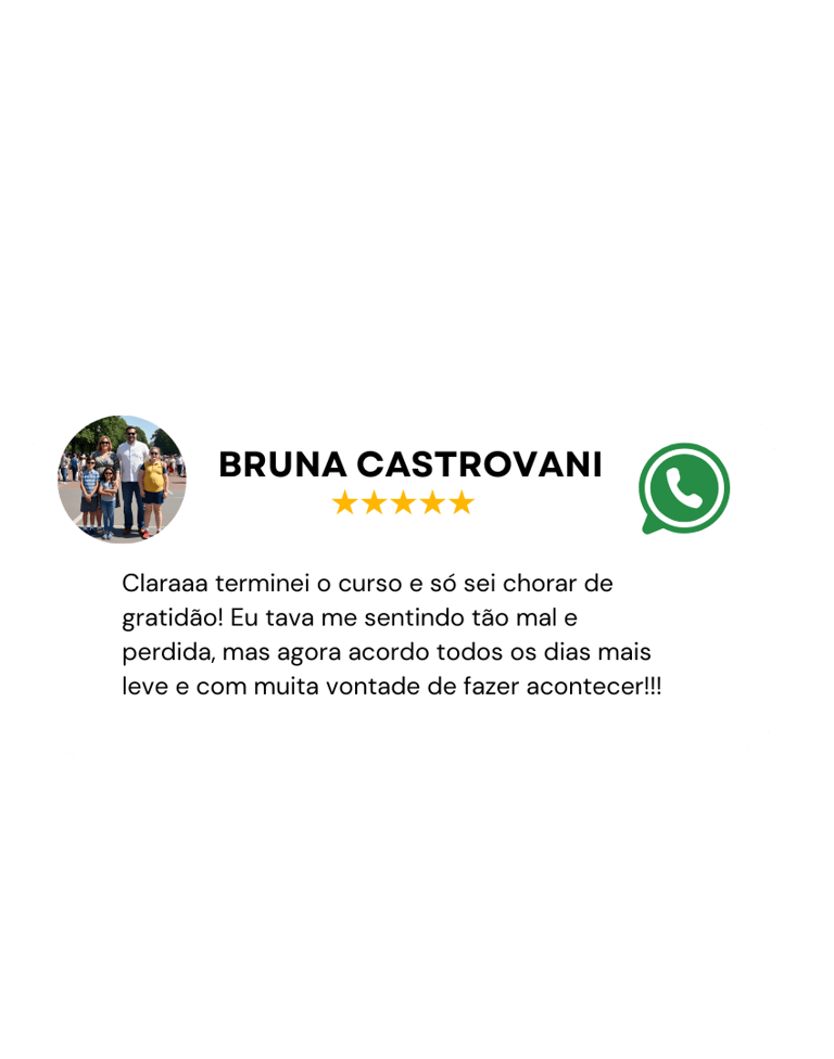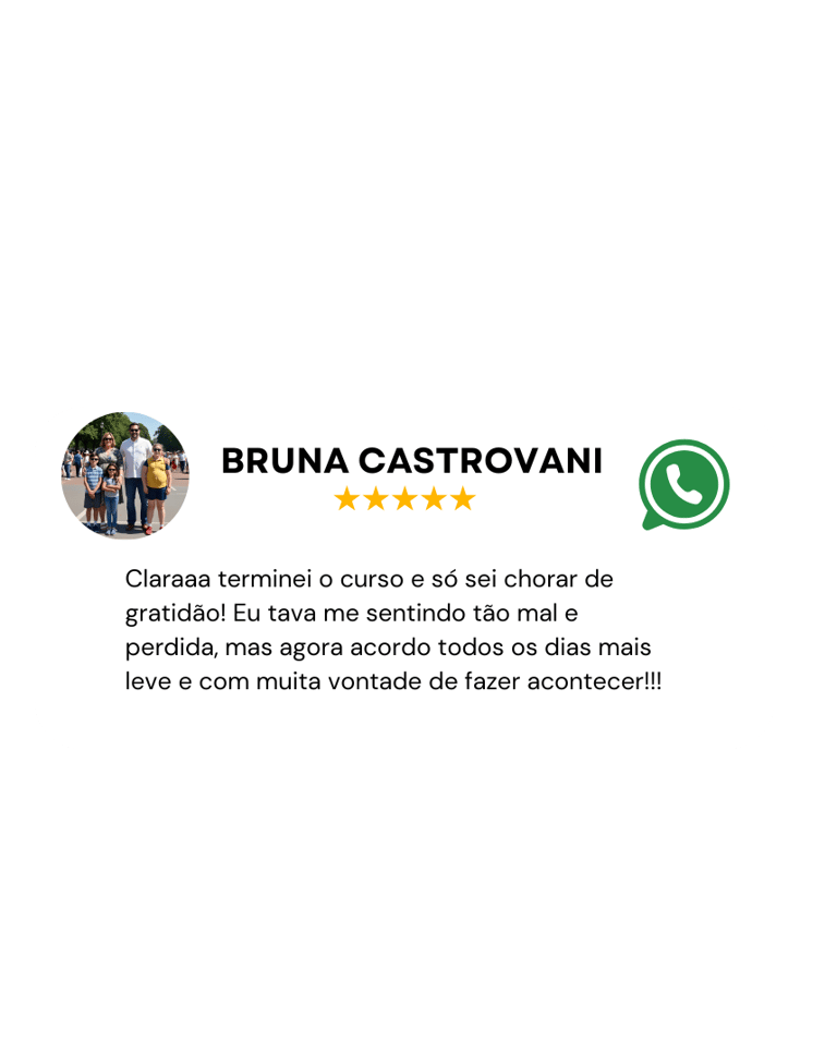 GARANTIA DE 7 DIAS: Você não corre nenhum risco. Faça o curso, aplique o método, sinta a transformação. Se você não perceber mudanças reais na sua autoestima, eu devolvo todo o seu dinheiro. O risco é todo meu.